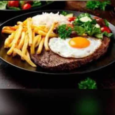 Arroz soltinho, feijão fresquinho, bife suculento com ovo frito e batata crocante. Uma refeição completa, saborosa e caseira, perfeita para matar a fome com aquele gostinho de comida feita na hora.