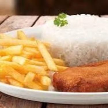 Arroz, feijao, frango, fritas