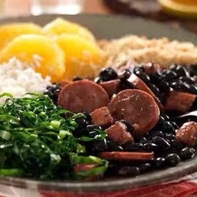 Acompanha arroz, feijoada , couve, farofa, torresmo, vinagrete.