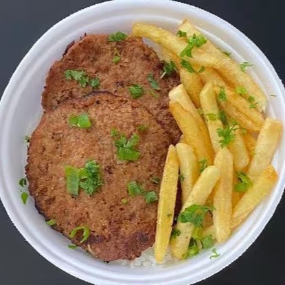 Acompanha Arroz, Feijão, Bife à Milanesa e 2 Guarnições à sua Escolha!