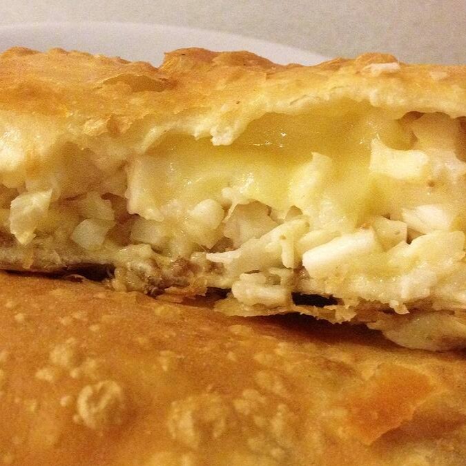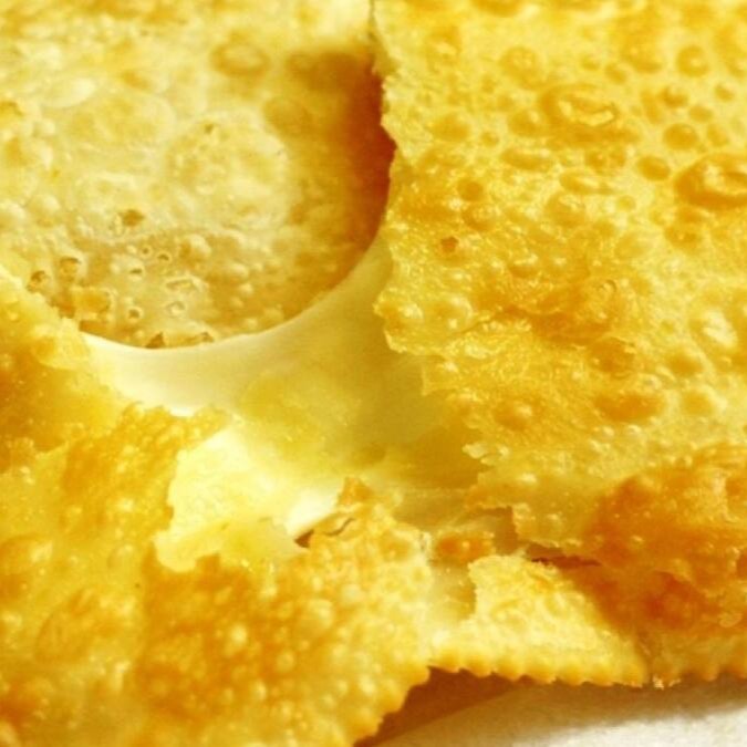 Pastel de Três Queijos, com queijo mussarela e Catupiry e Cheddar