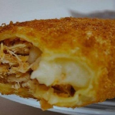 Pastel com creme de Palmito, frango desfiado e refogado e queijo mussarela.