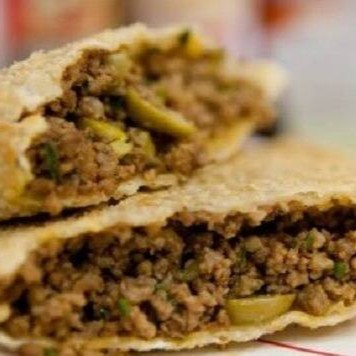 Com recheio de carne moída temperada com tempero sírio, limão, cebola picada e folhas de hortelã fresca.
