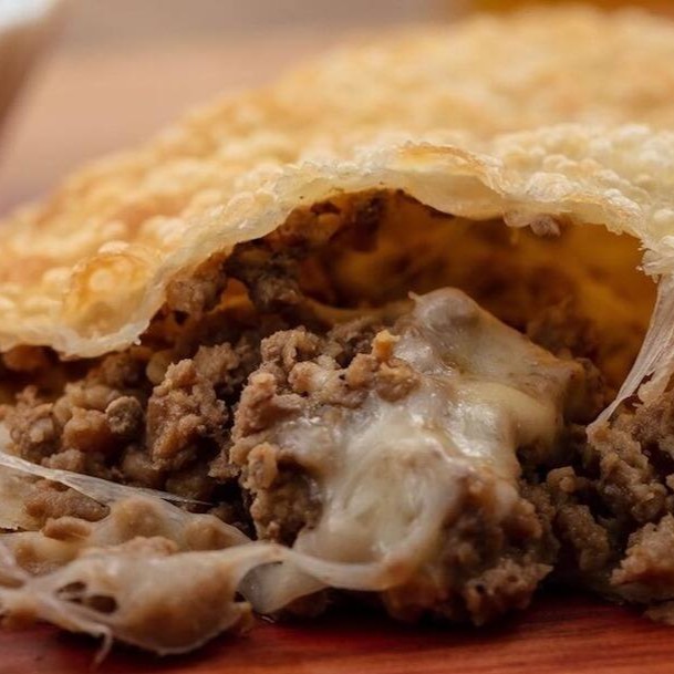 Pastel de Carne moída refogada com queijo mussarela e milho