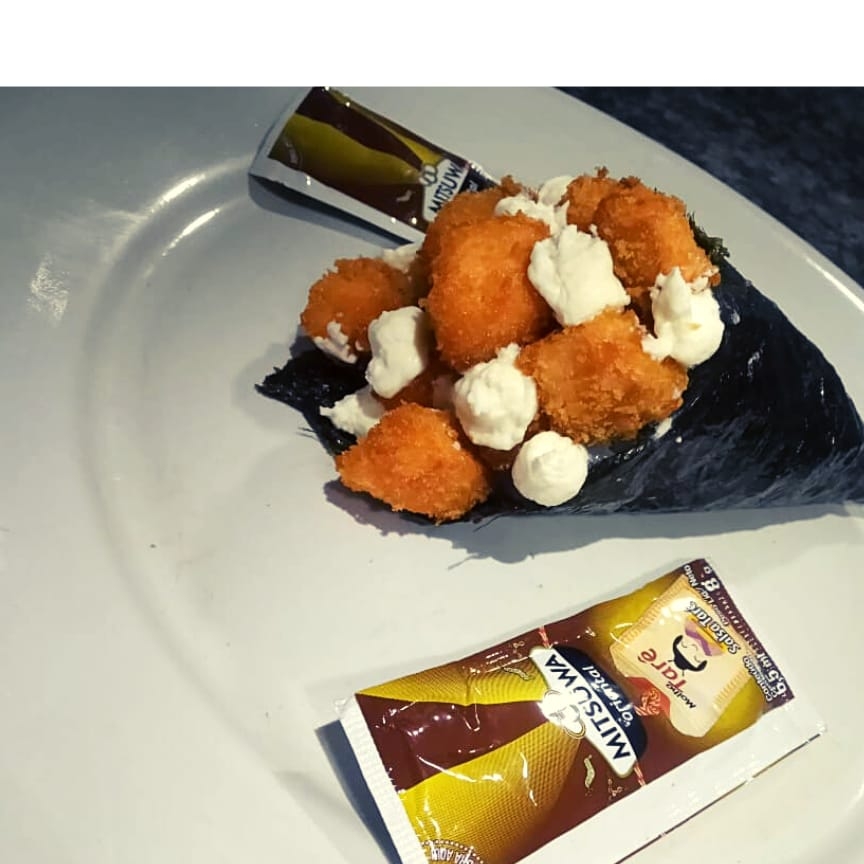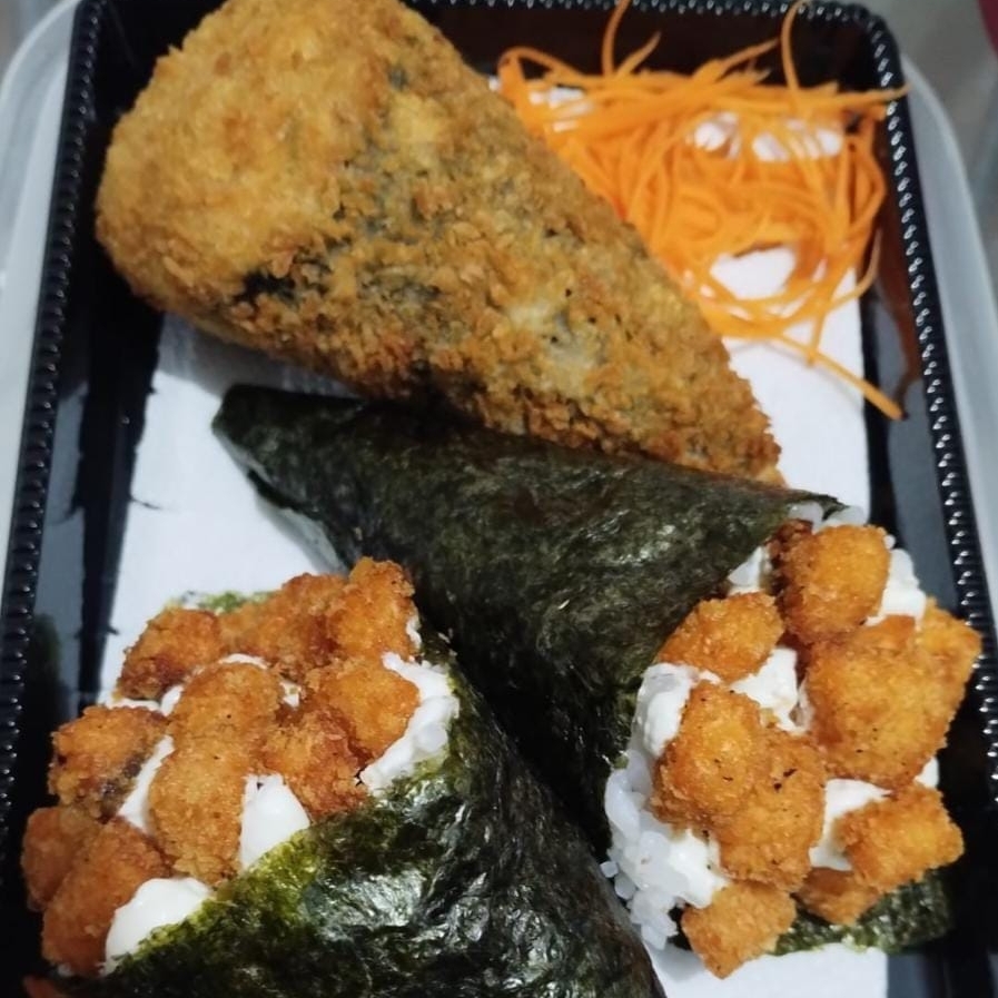Alga,Gohan ,salmão em cubos fritos, Cream cheese e cebolinha