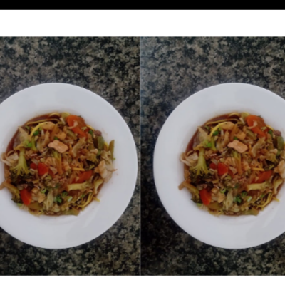 Tudo feito na hora(Frango,macarrão frito, cenoura, repolho,couve-flor,brócolis,molho shoyu e cebolinha)