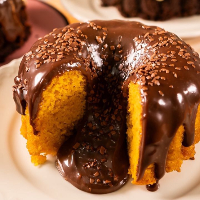 massa fofinha de cenoura, com cobertura de brigadeiro 500g serve ate 3 pessoas