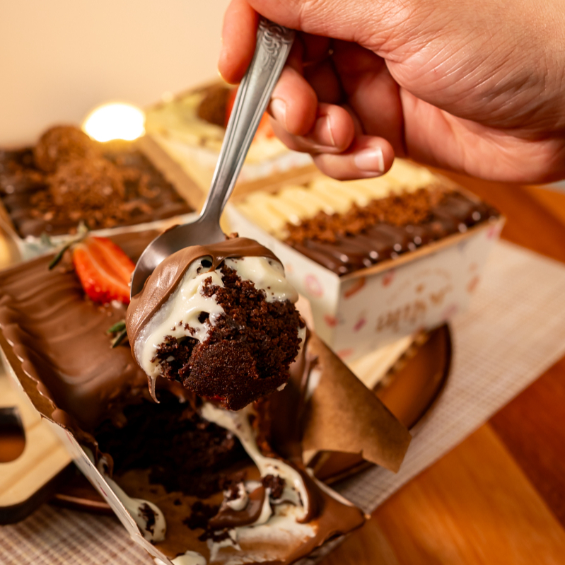 massa fofinha de chocolate, recheio de brigadeiro bem cremoso 500g serve ate 3 pessoas