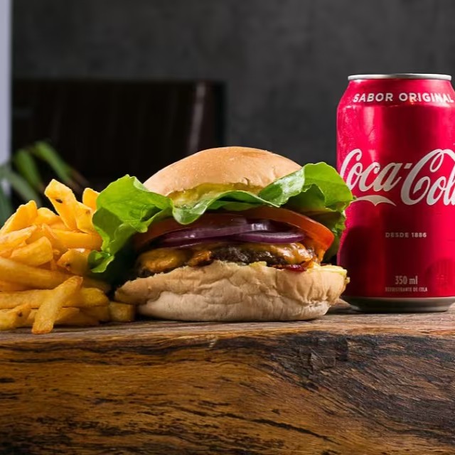 Rox Burguer + Batata Frita Mccain Surecrispy 9mm tamanho "P" + Coca-Cola 350 ml Gelada. Ideal para 1 pessoa