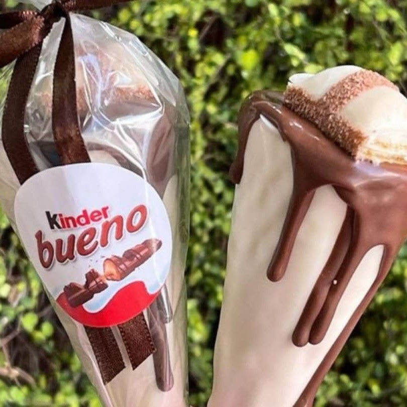 Apresentamos o sofisticado Cone Trufado Kinder Bueno, da categoria de Cones Trufados Gourmet. Delicie-se com a casquinha irresistivelmente crocante, meticulosamente envolvida em um chocolate branco de alta qualidade. Os fios de chocolate blend adicionam um toque complexo e harmonioso ao paladar. O recheio caseiro, inspirado no famoso Kinder Bueno, é uma sinfonia de sabor inigualável. A finalização com mais chocolate blend e um bom-bom Kinder Bueno é a cereja do bolo, criando um equilíbrio perfeito de sabores. Não perca a oportunidade de desfrutar deste deleite gourmet!