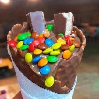 Delicioso cascão envolvido por dentro e por fora em um delicioso chocolate blend recheado com delicioso creme de chocolate Blend finalizando com confetes e Kit Kat uma delícia ...