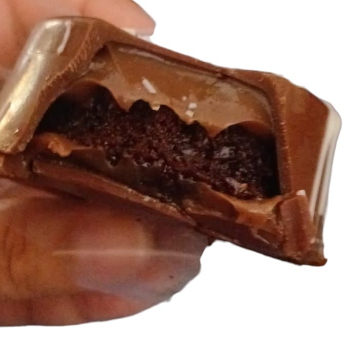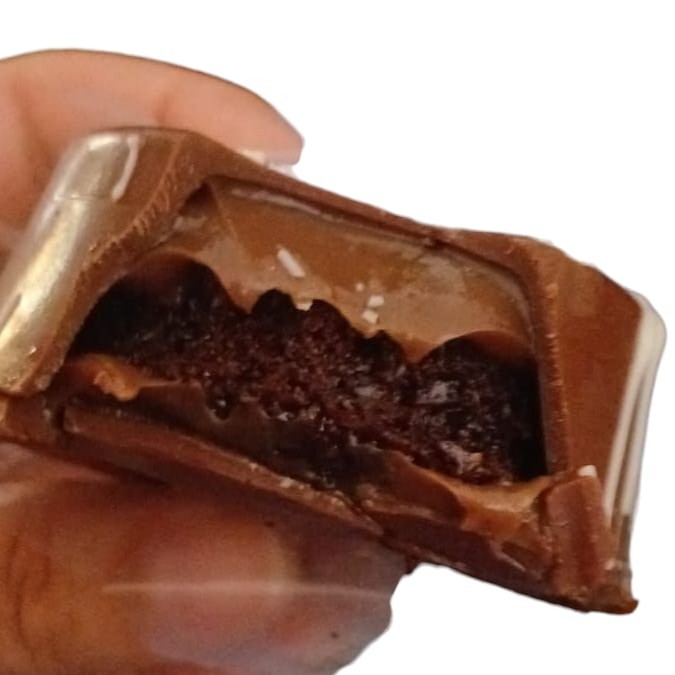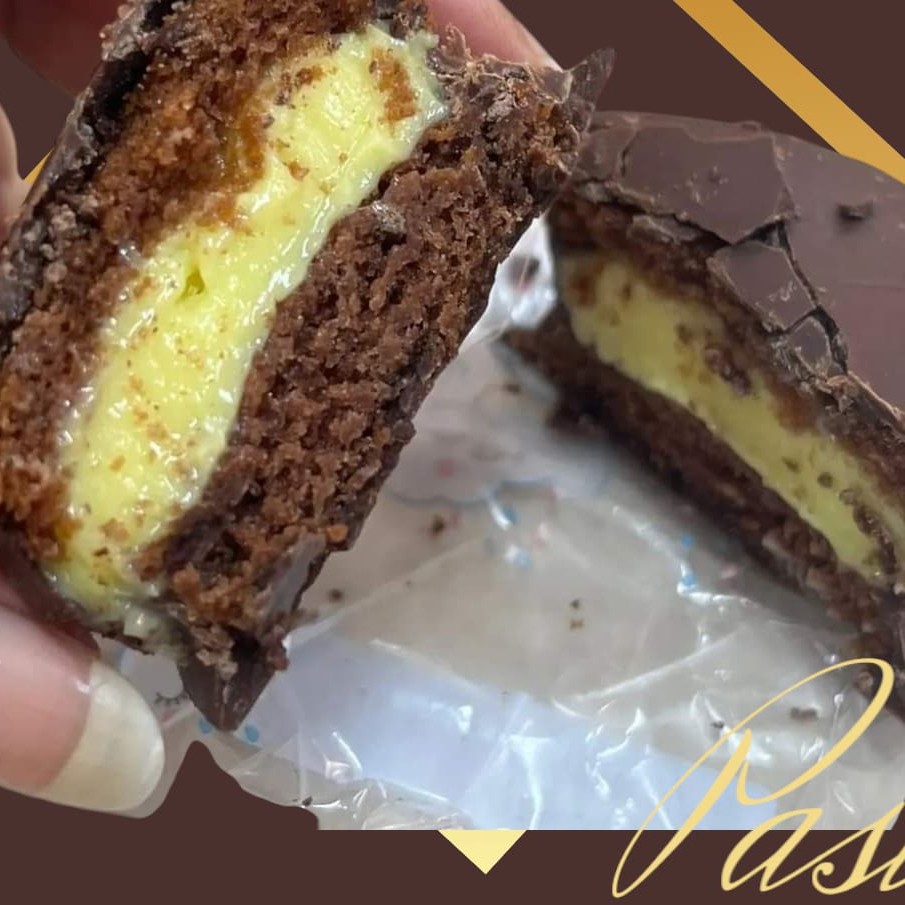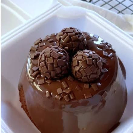 Delicioso pão de mel casquinha de chocolate blend,massa fofinha Recheado com incomparável creme de brigadeiro cremoso finalizando com fios de chocolate branco
