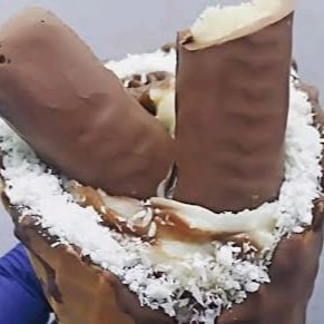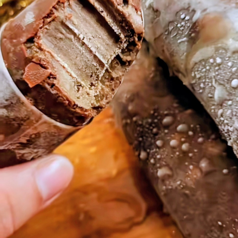 Delicioso geladinho cremoso de ninho ,com uma deliciosa casquinha de Nutella