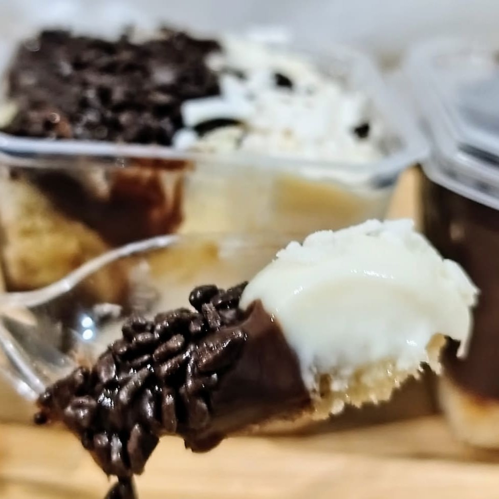 O 'Bolo de Pote Ninho com Chocolate é uma deliciosa combinação de sabores. A massa branca, excepcionalmente macia e úmida, se entrelaça perfeitamente com duas generosas camadas de creme de chocolate, conferindo um sabor rico e equilibrado à sobremesa. O toque final fica por conta do creme de brigadeiro branco, adicionando uma doçura irresistível ao conjunto. Para arrematar, um mix de granulados de chocolate ao leite e branco, proporcionando uma textura crocante que contrasta maravilhosamente com a suavidade dos cremes. Este bolo de pote é uma verdadeira celebração de sabores!