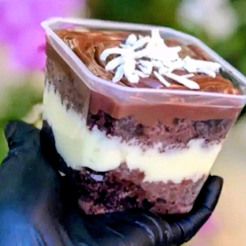 Saboroso Bolo de Pote de Prestígio, uma verdadeira delícia que encanta a todos os paladares. Composto por uma massa de chocolate macia e suculenta, é intercalado com uma generosa camada de creme de Prestígio, proporcionando um sabor único e inconfundível. Acrescentamos ainda uma camada de creme de chocolate blend, que confere ao prato um toque sofisticado e irresistível. Finalizamos com uma cobertura de coco ralado fresco, que acrescenta uma textura agradável e um sabor ainda mais encantador. Uma experiência gastronômica imperdível!