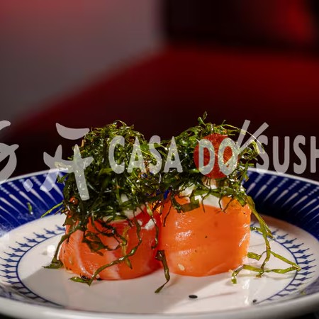 Com salmão fresco, cream cheese cremoso e um toque de cebolinha, envolto em alga nori crocante, oferece uma combinação perfeita de sabores suaves e texturas deliciosas em cada mordida.