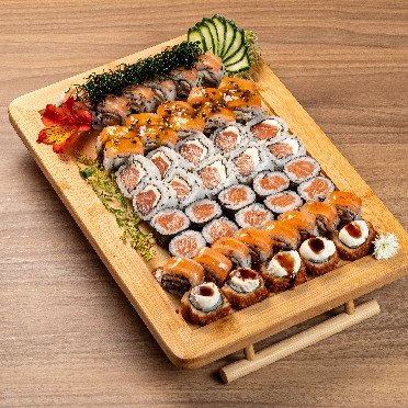 Recheado com salmão, coberto com uma camada de cream cheese e um toque de molho agridoce, é envolto em alga crocante para um contraste irresistível.