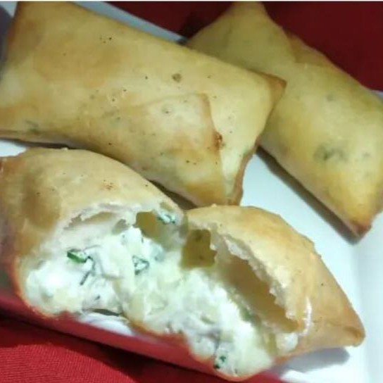 (Rolinho de massa crocante com queijo mussarela e cream chesse com cebolinha. Acompanha 1 molho agridoce.)