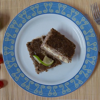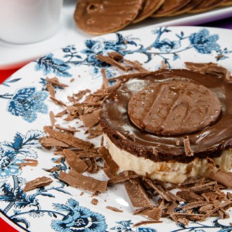 140g - Torta à base de bolacha maisena e creme de chocolate.