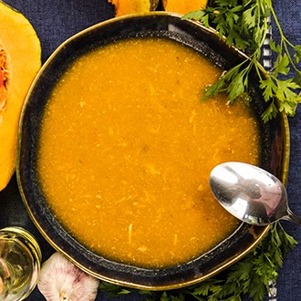 350g - Creme de abóbora cabotiá com pedaços de carne