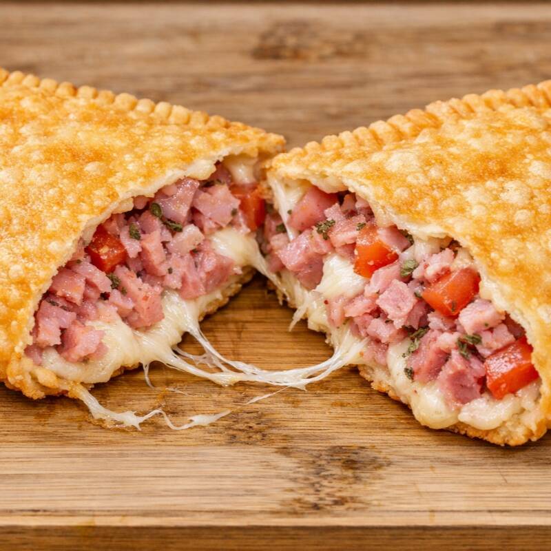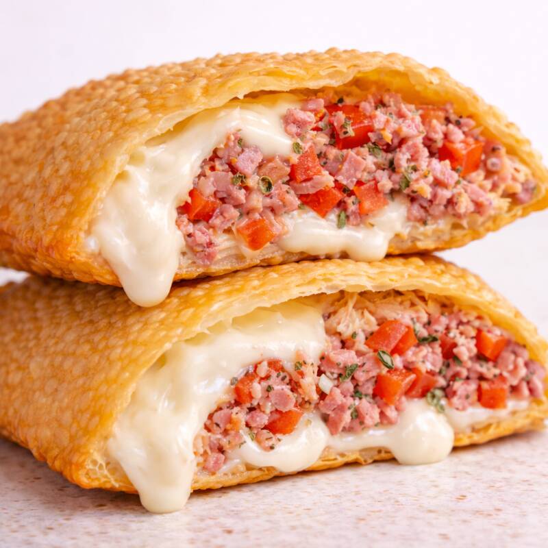 Delicioso pastel de presunto, mussarela com um toque de orégano e requeijão cremoso.