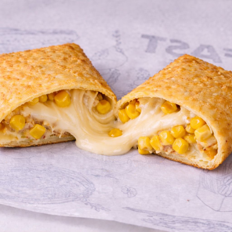 Delicioso pastel de milho verde, com mussarela e requeijão cremoso.
