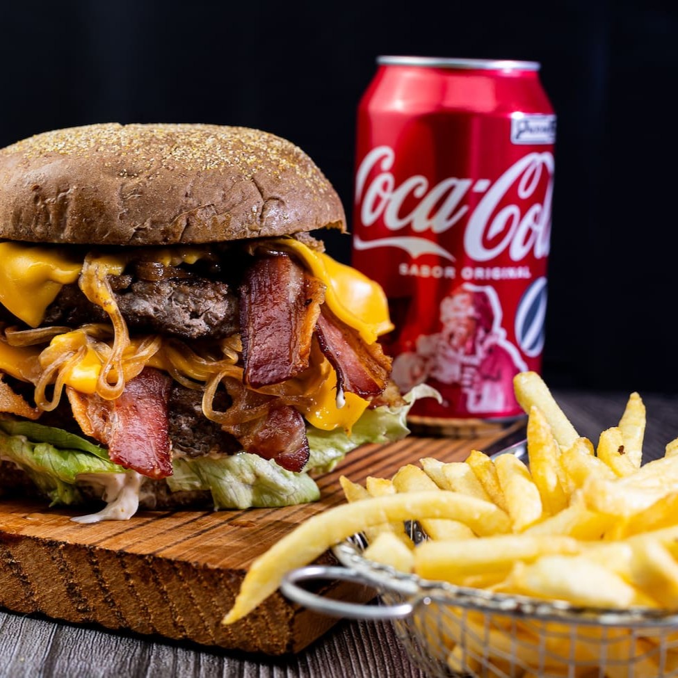 2 Deliciosos Hambúrguer Angus de 200 g, coberto com aquele Queijo Cremoso de Qualidade, recheado com Bacon Suculento e Crocante. Isso tudo envolvido em um Pão Brioche delicioso com Molho Especial. Uma Deliciaaaaa