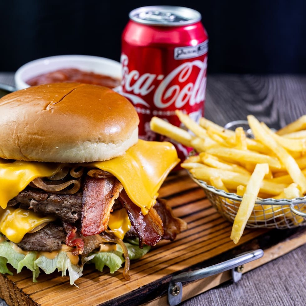 2 Deliciosos Hambúrguer Angus de 200 g, coberto com aquele Cheddar de Qualidade, recheado com Bacon Suculento e Crocante, com aquela Cebola Gratinada Regada ao Shoyu. Isso tudo envolvido em um Pão Australiano delicioso com Molho Defumado e Alface Americano Fresquinho e Crocante. Uma Deliciaaaaa