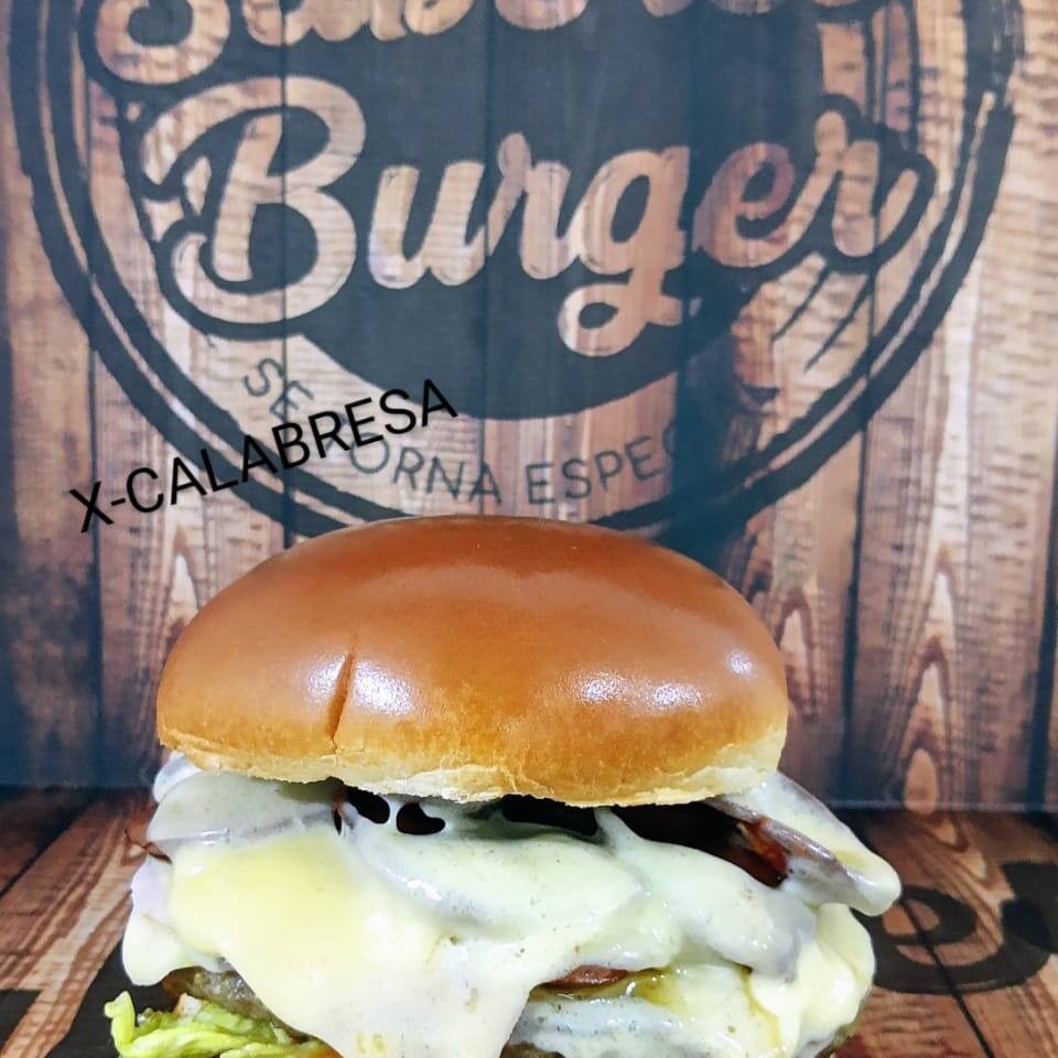 Pão brioche, hambúrguer, presunto, queijo cremoso, calabresa, salada e molho especial.