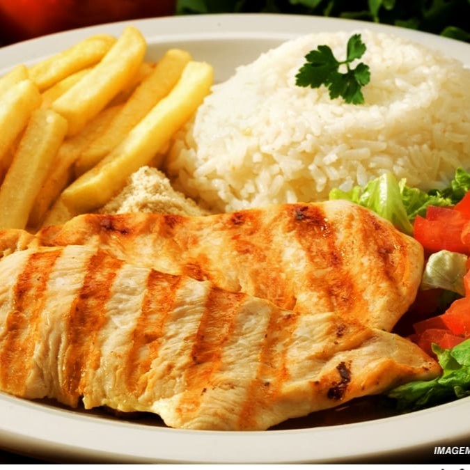 Delicioso filé de frango com aquele tempero especial. Esse prato acompanha Arroz, Feijão, Batata Frita e Farofa.