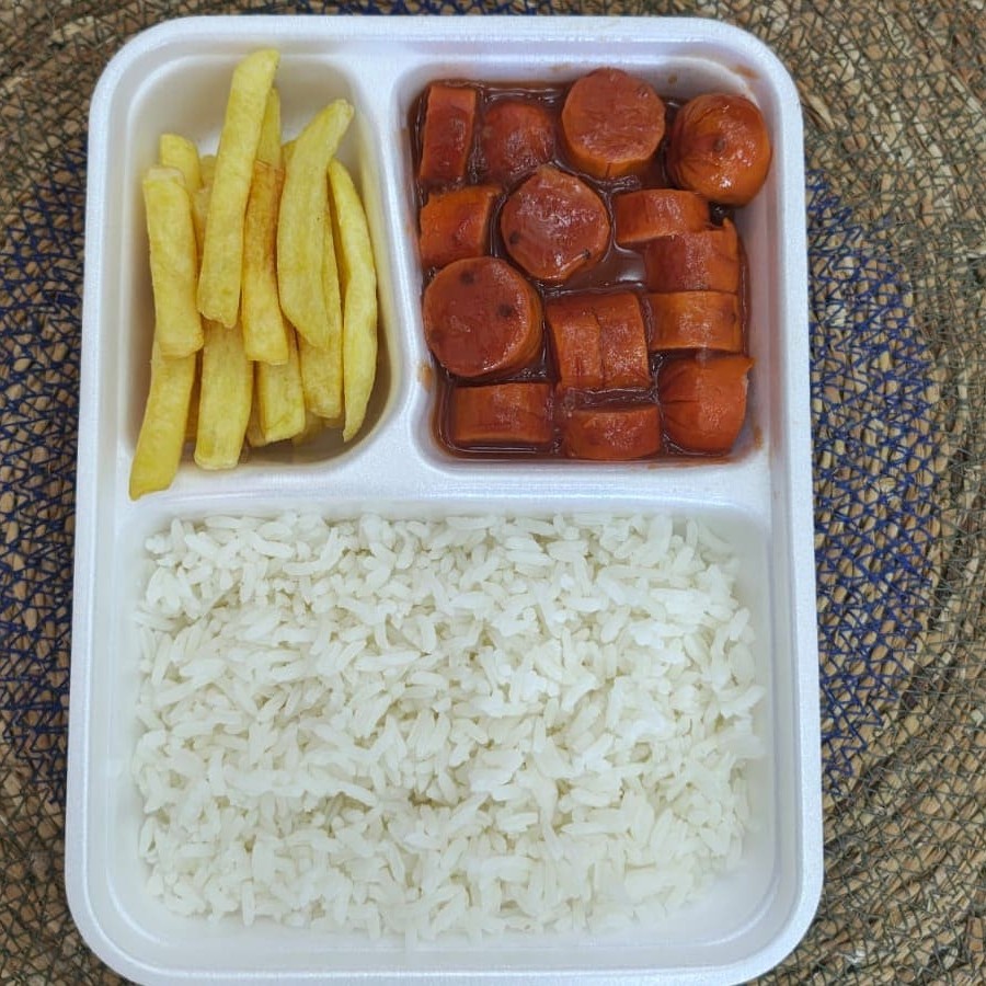Marmita Mini Salsicha Ao Molho + Arroz + Batata Frita