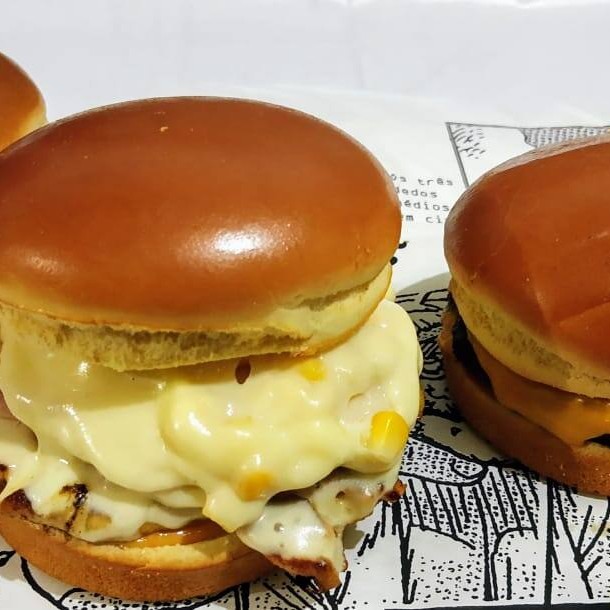 Pão brioche, filé de frango, queijo cremoso, presunto, milho, catupiri, salada e molho especial.