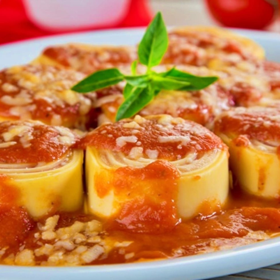 Aprox. 600 gramas de rondelli de presunto e queijo coberto com um delicioso molho vermelho,,, prontinho para saborear