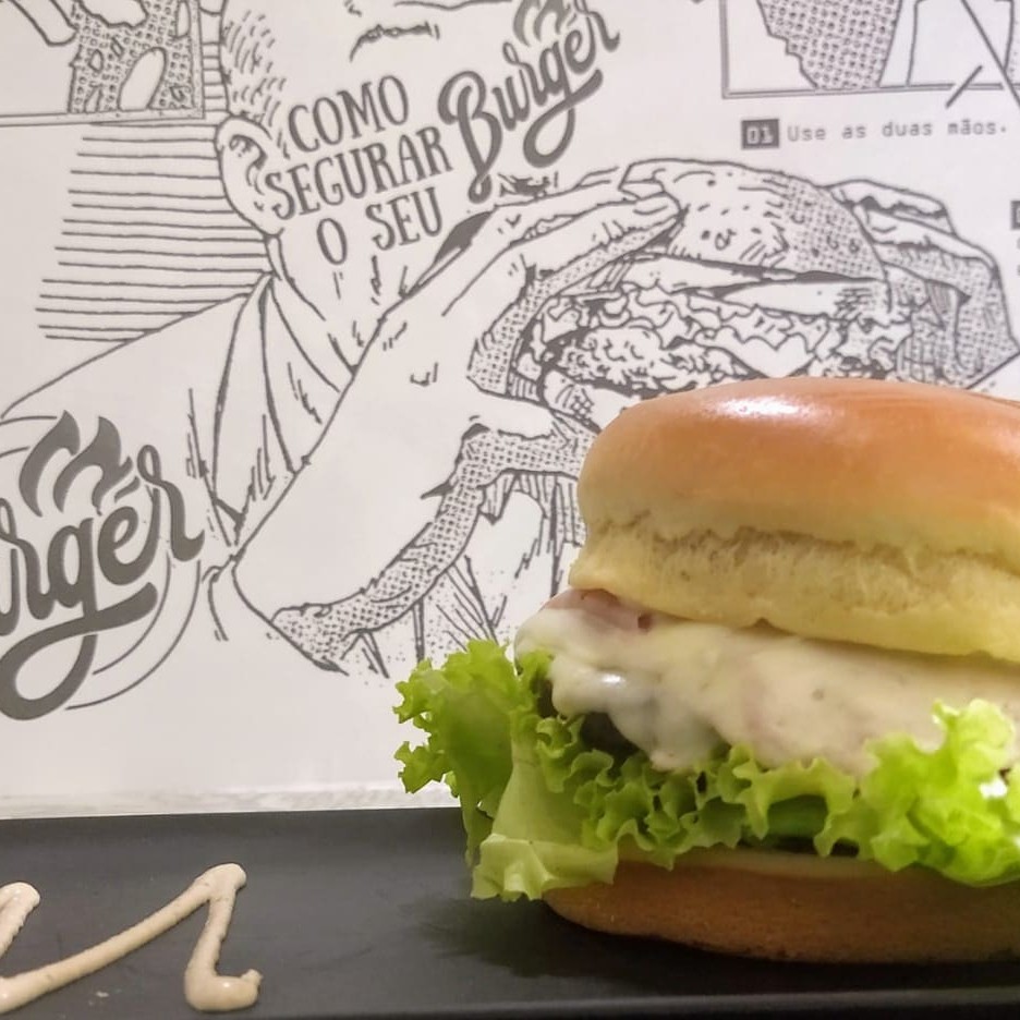 Pão Brioche,Hambúrguer, presunto, queijo Cremoso e molho especial.