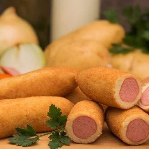 Delicioso enroladinho com salsicha suculenta, envolta em uma massa dourada e crocante.