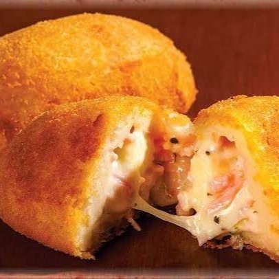 Risoles recheado com presunto suculento e queijo derretido, envolto em uma massa crocante.