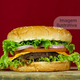 Pão, hambúrguer, bacon, alface, tomate, molho, maionese,