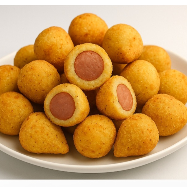 50 mini salgadinhos fritos sortidos conforme disponibilidade de sabores do Dia. Aproximadamente 20g cada.