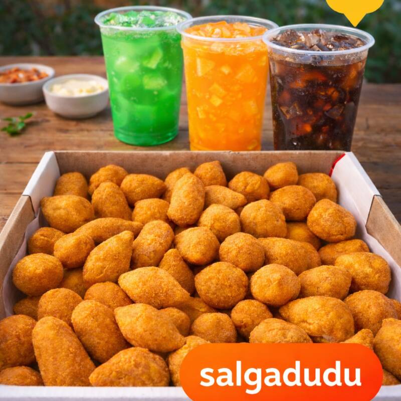 100 Mini Salgados + Refrigerante 2 Litros