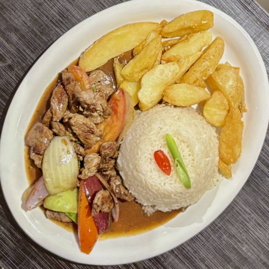 Um dos pratos mais tradicionais e amados do Peru, preparado com suculento filé mignon salteado no molho shoyu, cebola roxa, tomate e especiarias peruanas. Combina sabores intensos e aroma irresistível. Acompanha arroz branco e batatas fritas crocantes, garantindo uma experiência autêntica e saborosa.