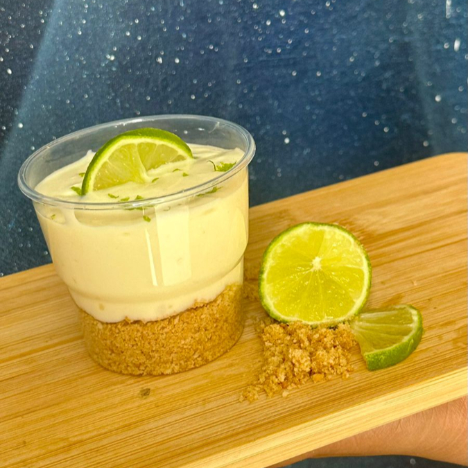 base de bolacha maisena amanteigada, mousse de limao cremoso e chantilly