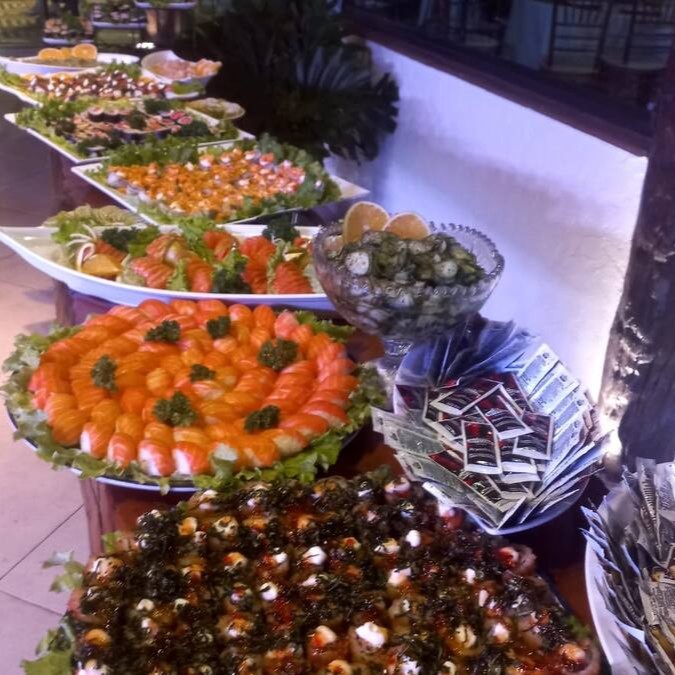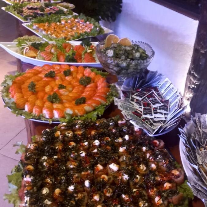 Camarão empanado com crêem chesse e salmão