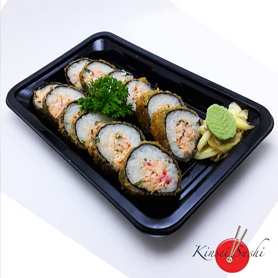 Delicioso sushi empanado e frito, com recheio cremoso de salmão fresco, kani kama, cream cheese e toque de cebolinha. Uma combinação irresistível de textura crocante por fora e sabor suave por dentro.
