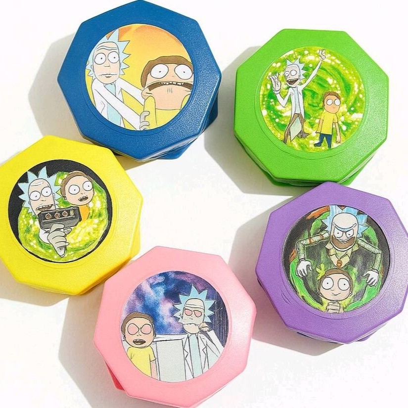 Dichavador de plástico (sem ímã) com estampa Rick And Morty Cores disponíveis: Roxo, Verde , Marrom, Amarelo Importante: ao finalizar a compra, escreva nas observações a cor desejada. Caso não escolha, será enviada uma cor aleatória.