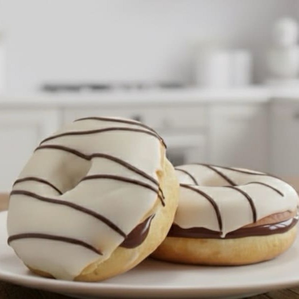 Macio por fora, cremoso por dentro. Nosso donut é recheado com Ninho e chocolate ao leite e coberto com chocolate branco Aprox 100g
