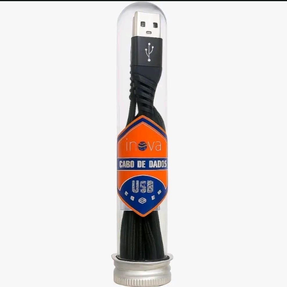 Cabo carregador Lightning da marca Inova , com 1 metro de comprimento. Conta com revestimento em tecido trançado, oferecendo mais resistência e durabilidade no uso diário. Compatível com iphone, é ideal para carregamento rápido e transferência de dados com eficiência e segurança.