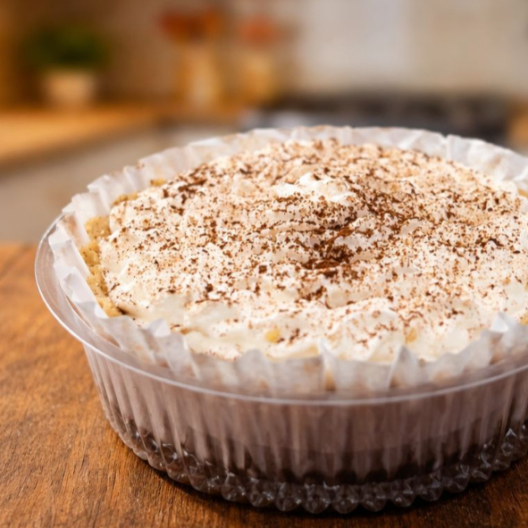 Banoffinha Santa Larica feita com casquinha crocante, camada generosa de doce de leite, banana fresquinha, chantilly leve e finalizada com chocolate e canela. Equilíbrio perfeito entre doce e aconchego 100g