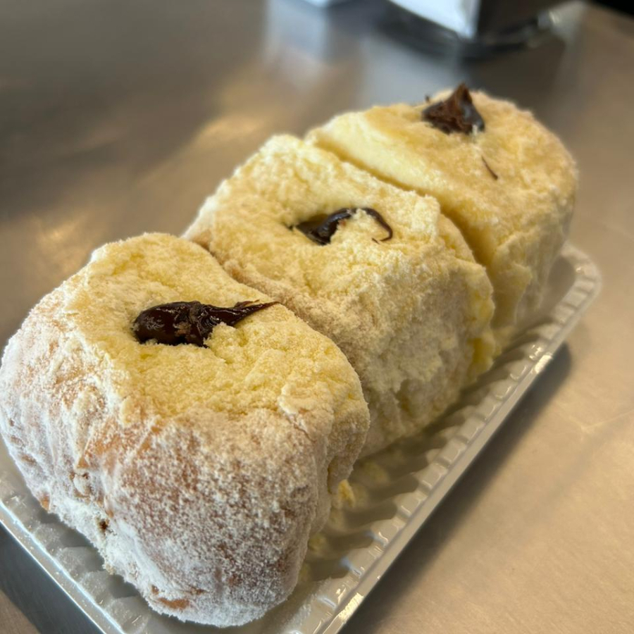 Pãozinho de leite doce rechado generosamente com Nutella pura, forrado por fora com leite em pó Ninho. 3 unidades