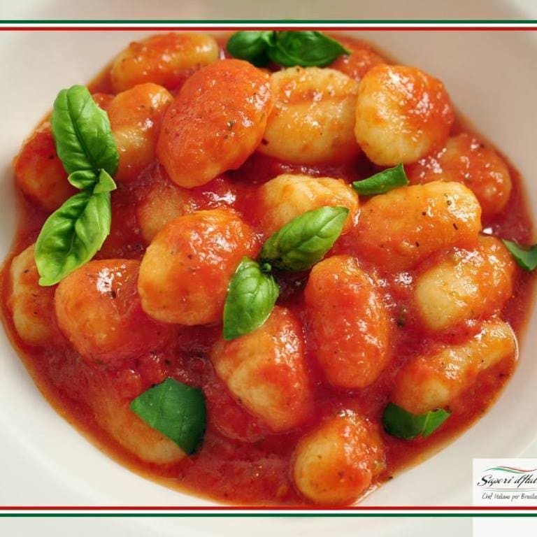 Nhoque de mandioquinha ao molho de tomate.