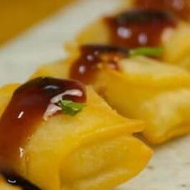 Rolinho primavera, recheado com queijo.